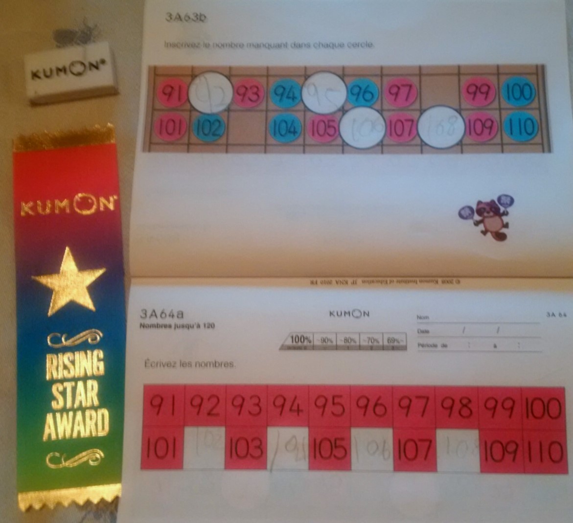 Happy Thanksgiving Canada! 09 Sunday Oct 2016 Original size at 1171 × 1069 ≈ Leave a comment The Rising Star Award is giving for “beginning your academic journey with Kumon”. As for the homework? This week we did numbers over 100 for the first time and next week we ACTUALLY START ADDITION.